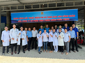 Trung tâm Y tế phối hợp với Liên đoàn Lao động thành phố Long Xuyên tổ chức khám bệnh và cấp thuốc miễn phí cho công nhân Công ty Hưng Phúc Thịnh phường Mỹ Quý