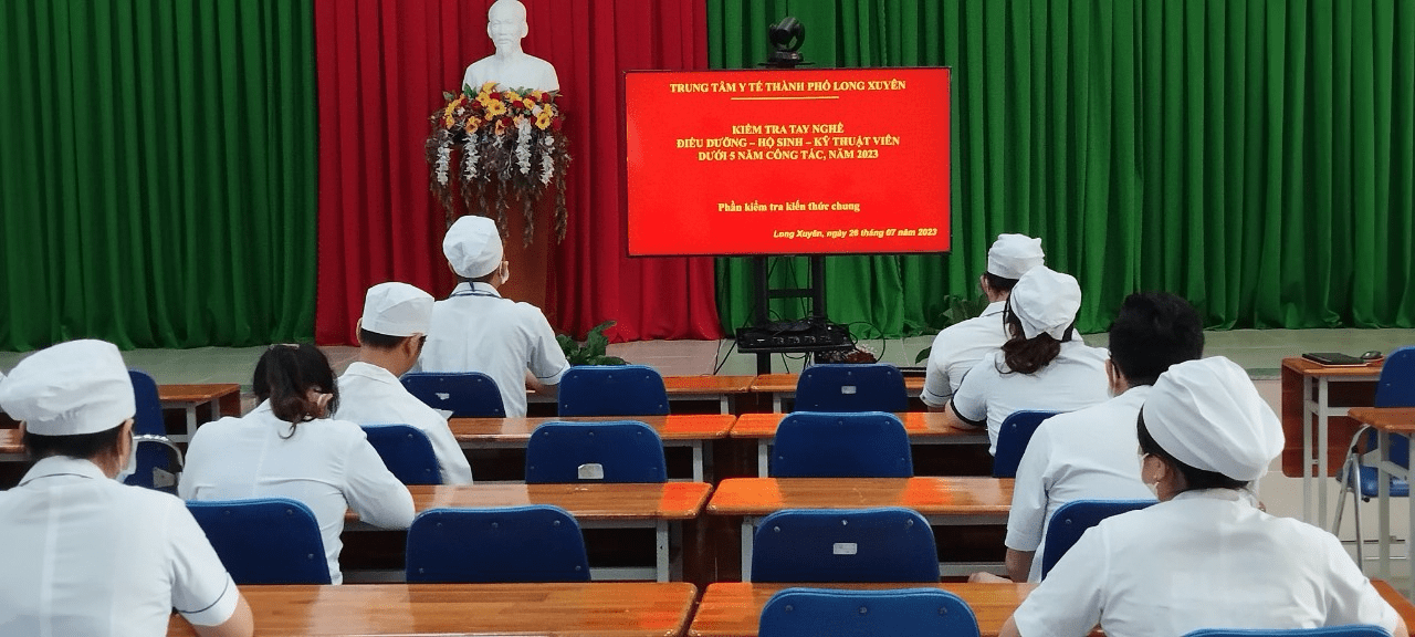 Thực hiện Kế hoạch số 1094/KH-TTYT ngày 04/7/2023 của Trung tâm Y tế TP.Long Xuyên về việc tổ chức hội thi kiểm tra tay nghề điều dưỡng, hộ sinh, kỹ thuật viên có thâm niên công tác dưới 05 năm.