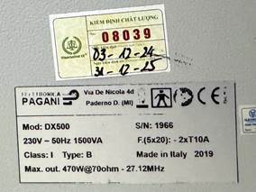 Thông báo Về việc mời nộp báo giá bảo trì, sửa chữa, kiểm định sau sửa chữa máy sóng ngắn điều trị Elettronica Pagani DX500